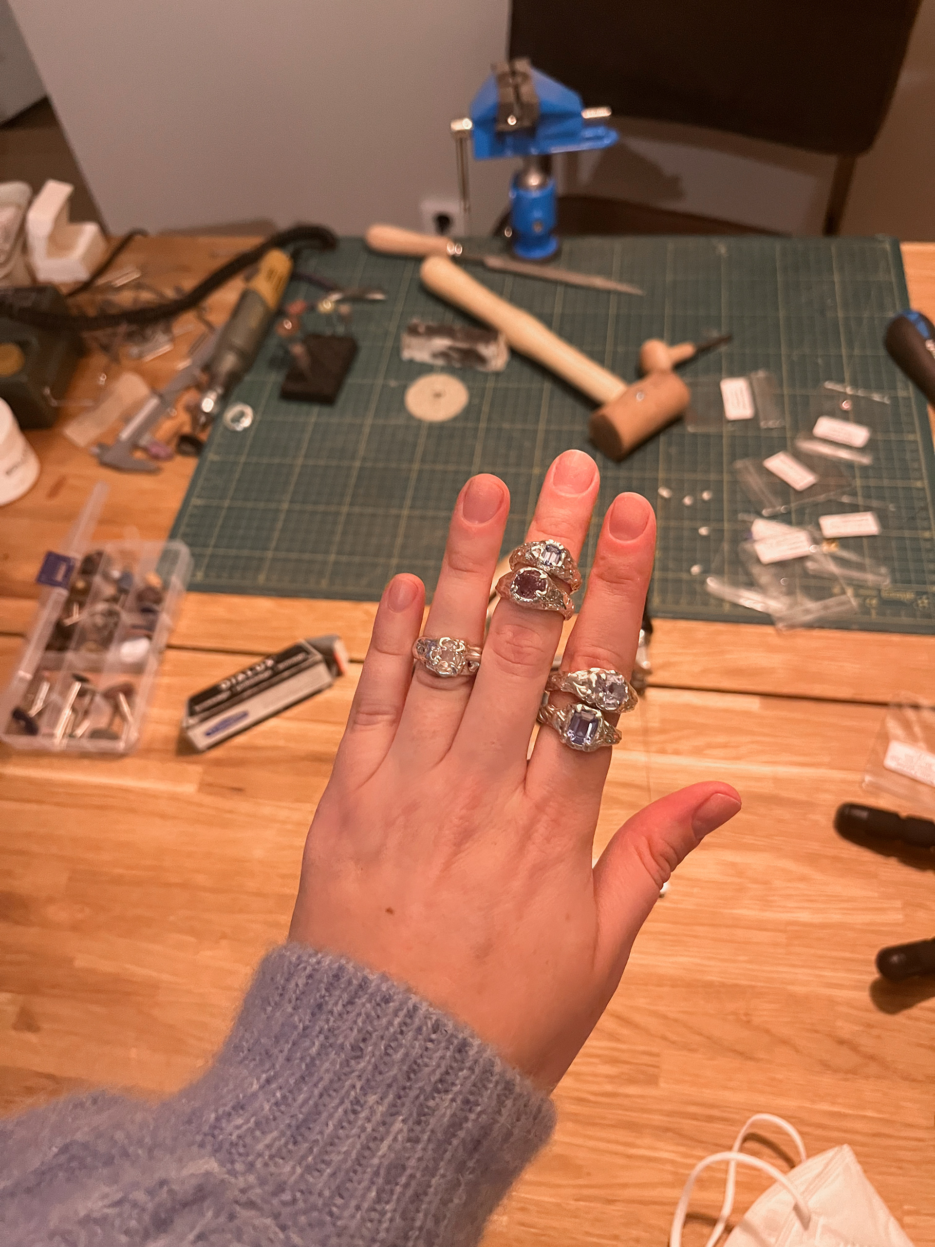 I spend a lot of time doing art and crafts, and silversmithing is one of them. I make my jewelry at home and sell them online in small scale.